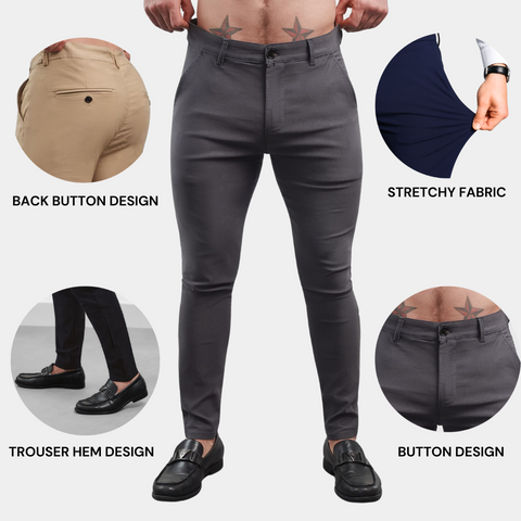 These trousers combine modern elegance with lasting comfort. With a stretch fabric, clean button finishes, and sharp tapering, they offer a tailored look that doesn’t compromise on comfort.